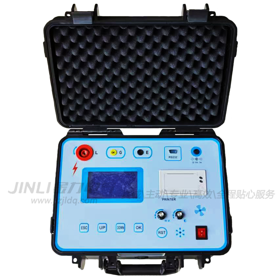 JL9001水內(nèi)冷發(fā)電機(jī)絕緣電阻測試儀、輸出電流大于20mA,輸出電壓有2500V、5000V兩種可選。儀器內(nèi)含高精度微電流測量系統(tǒng)、數(shù)字升壓系統(tǒng)。只需要用一條高壓線和一條信號線連接試品即可測量。測量自動進(jìn)行,結(jié)果由大屏幕液晶顯示,并可以將結(jié)果進(jìn)行存儲。