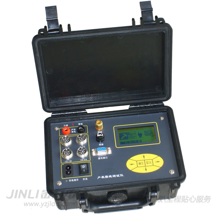 JL1219戶表接線測試儀,測試可分自動,手動兩種方式;儀器的先進之處在于:它可以自動判斷所有戶表的接線狀態是開路,短路,正確或火線與零線反接,并在每一界面加以提示,這使得該儀器成為名副其實的智能型儀表。