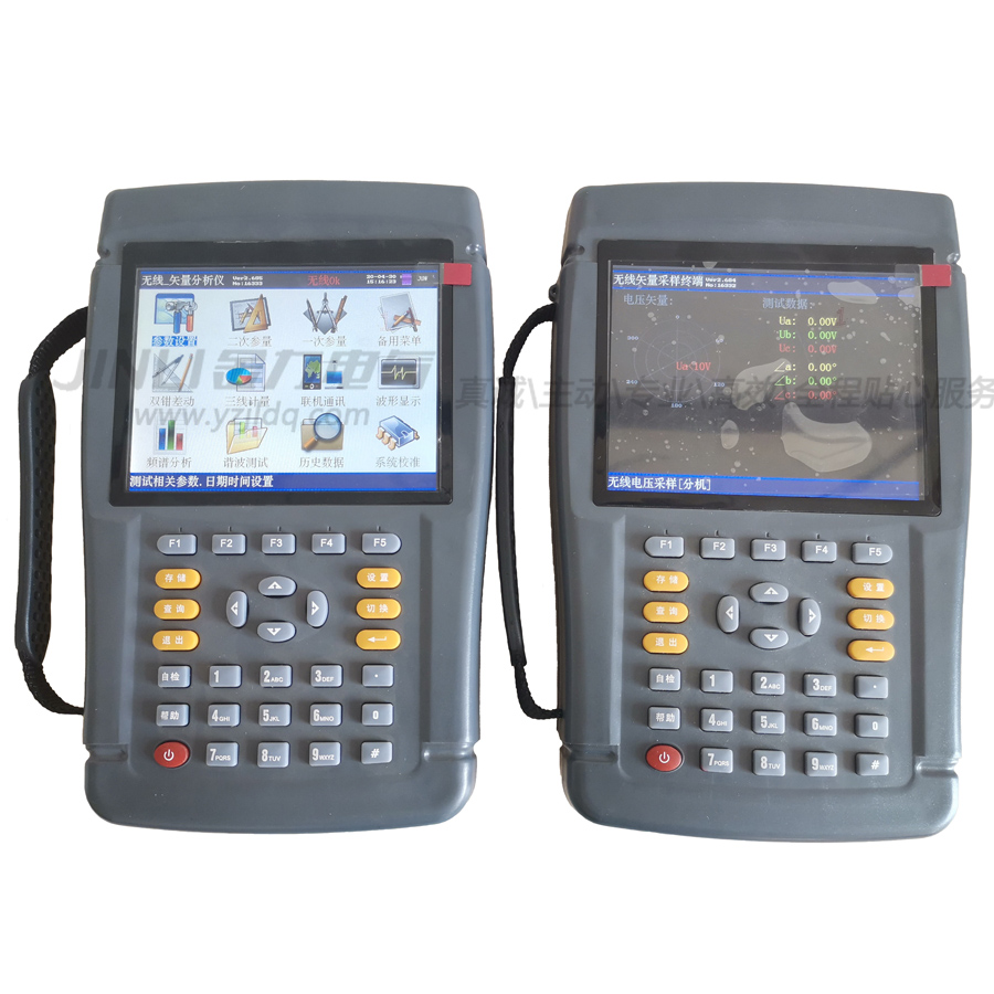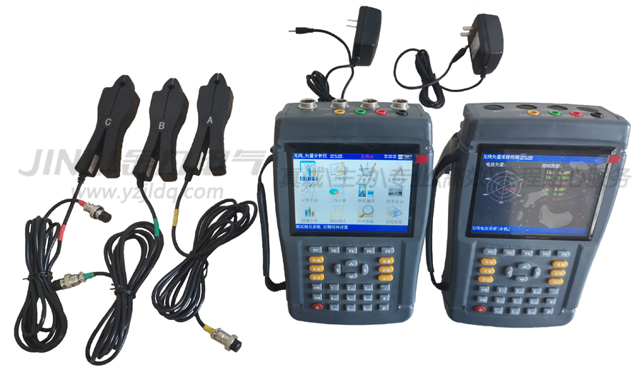 JL1205B保護回路矢量分析儀(無線6鉗)集多功能于一身,具有多種測量功能,主要測量功能為:相位儀功能—校驗主變差動保護和母線差動的正確性;電參量測試儀功能—測試電力系統(tǒng)必要的參數(shù);計量接線檢測儀功能—對三相三線電能計量接線檢進行檢測;諧波含量測試功能—現(xiàn)場測試電壓和電流的諧波含量;示波器功能—顯示柱狀圖,做為簡單的示波器,用來觀察測試信號波形。在某些情況下,PT的二次信號和CT的二次信號所處位置相隔比較遠,無法同時采集,無法完成電壓、電流的同時檢測,我們提供了主分機模式的無線測量方式,主機、分機分別檢測電流和電壓,解決了這一難題。
